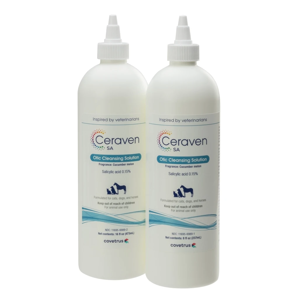 Cerasoothe SA Otic Cleansing Solution: For use on cats, dogs, and horses to cleanse, deodorize and dry the ear canal. Cleans, dries, and deodorizes the ear canal. Contains salicylic acid, a beta-hydroxy acid (BHA) to exfoliate and penetrate dead skin cells, wax build-up, and dirt. Ceramides and avenanthramides are skin nourishing nutrients that moisturize and calm the skin. They also support the skin’s natural immune system and provide building blocks for renewed skin barrier integrity.
