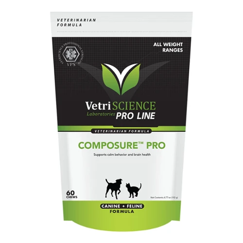 Composure™ Pro is recommended for serious behavioral, cognitive, and brain function support, as well as promoting quality sleep in cats and dogs.