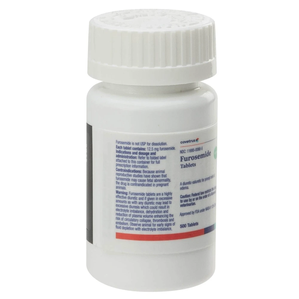 Furosemide tablets are a diuretic used to treat fluid retention (edema) associated with congestive heart failure in dogs, cats, and horses. Proven to help remove excess fluid from the body and excess sodium from the kidneys. May also be used to treat high blood pressure (hypertension).