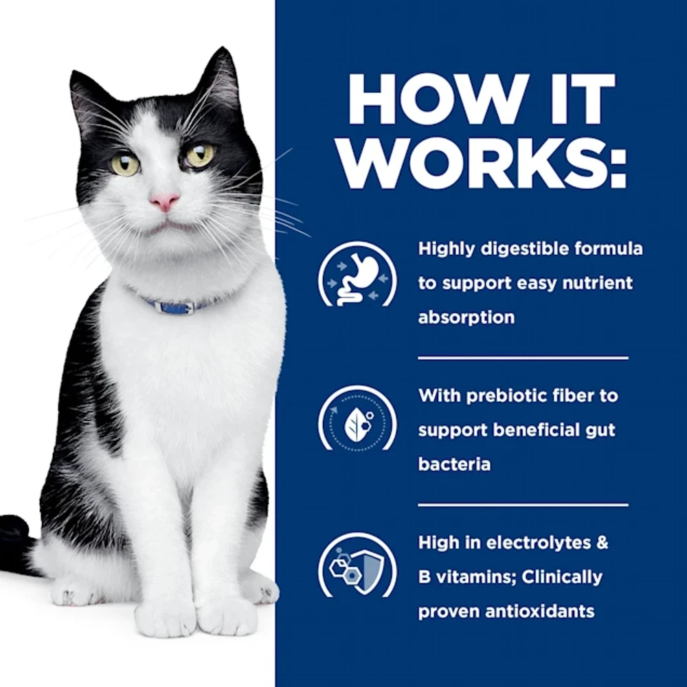 Help ease your cat’s GI disorder with nutritional support from Prescription Diet i/d Feline canned cat food. This highly digestible formula is created specifically to help manage cats with several types of gastrointestinal (GI) disorders that affect cats, including colitis, constipation/diarrhea, gastroenteritis and pancreatitis. GI disorders affect both the stomach and intestines, creating painful symptoms that can have an impact on your cat’s overall health. The most common symptoms associated with GI disorders are vomiting, regurgitation, flatulence, weakness, diarrhea or constipation. The nutritional formulation of Prescription Diet i/d Feline can help, and may also be useful for pets with a variety of conditions.