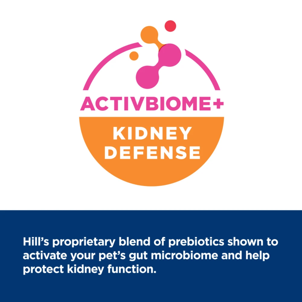 The nutrition of Prescription Diet k/d + j/d Wet Cat Food with ActivBiome+ Kidney Defense,is specially formulated by nutritionists & veterinarians to help manage chronic kidney disease (CKD) and degenerative joint disease (DJD). A proprietary blend of prebiotics activate the gut microbiome to reduce uremic toxins, slowing the progression of the disease and is clinically proven to improve & lengthen quality of life. This nutrition has therapeutic levels of omega-3 fatty acids from fish oil and is enriched with glucosamine and chondroitin sulfate to help preserve joint cartilage and increase mobility in as little as 28 days. In addition to high levels of essential amino acids and L-Carnitine, increasing caloric intake will support the cat’s natural ability to build muscle mass daily. This canned food has tasty bite-sized chunks in gravy and is made with wholesome ingredients like chicken & vegetables that cats love.