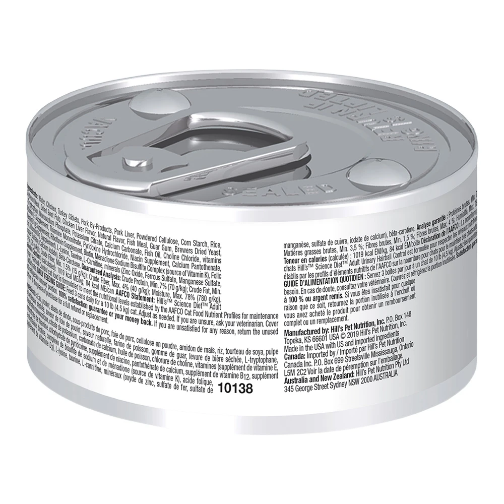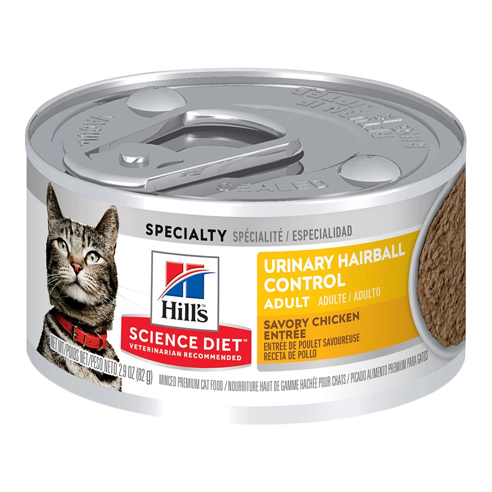 Science Diet® Adult Urinary Hairball Control Chicken Entrée provides precisely balanced nutrition to help support the health of the whole urinary system while also helping to avoid hairballs.