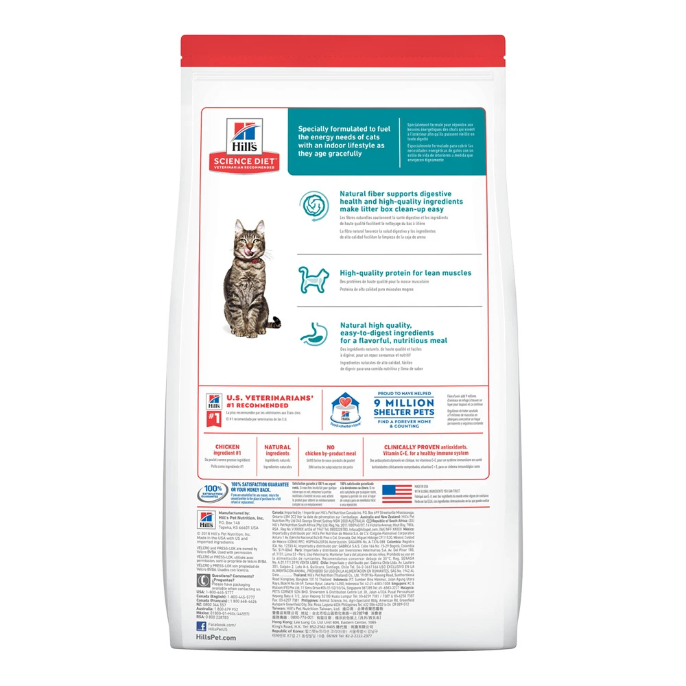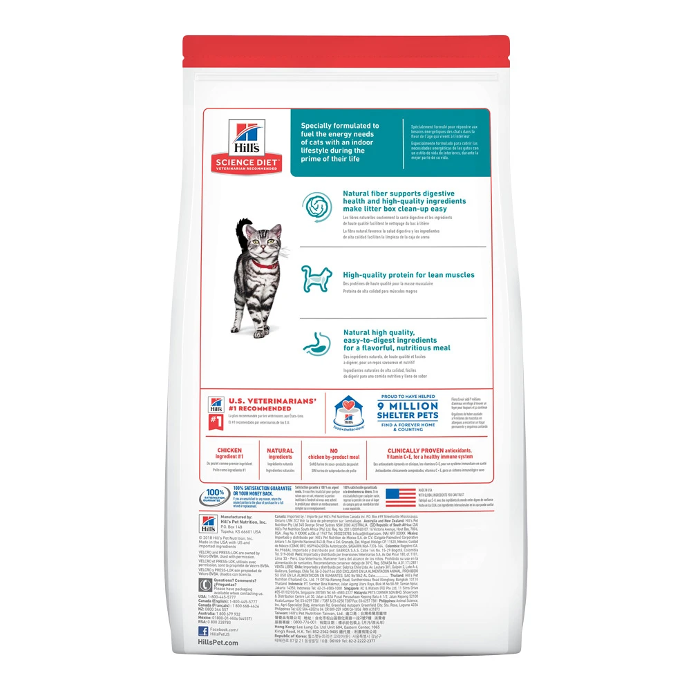 Hill’s Science Diet Adult Indoor cat food provides precisely balanced nutrition for cats with an indoor lifestyle. It has fewer calories than the Hill’s Science Diet Adult Optimal Care Original formula to help maintain a healthy weight and a unique fiber technology to help avoid hairballs. It also has clinically proven antioxidants to support a healthy immune system for your cat.