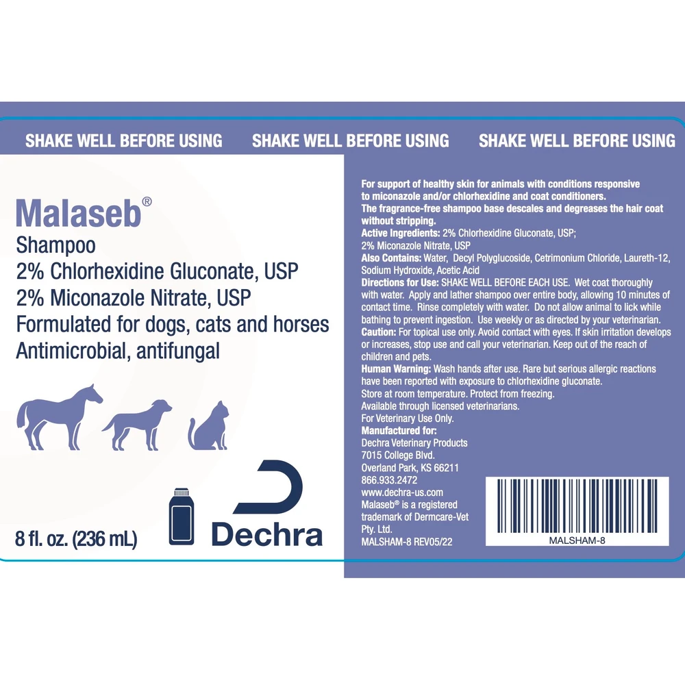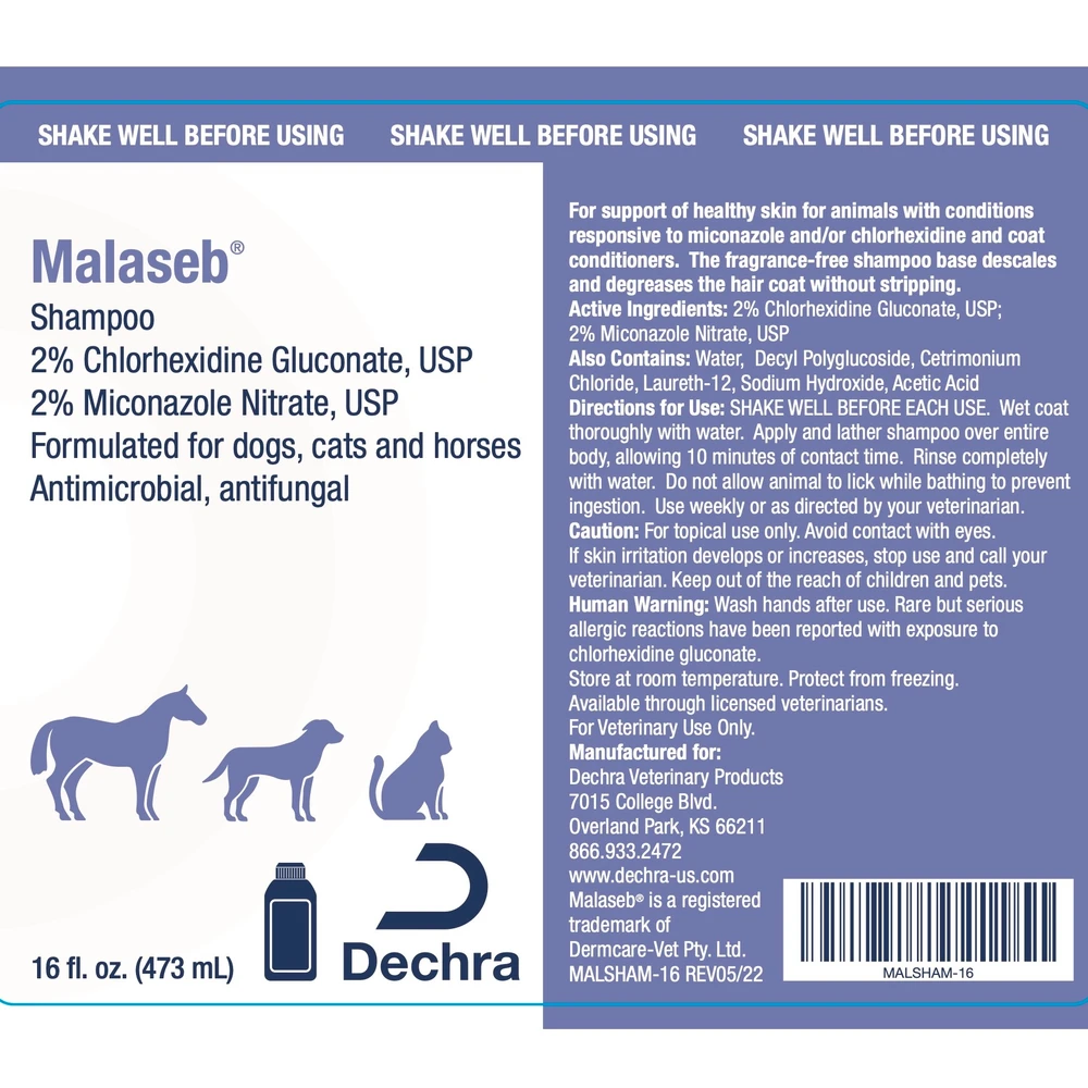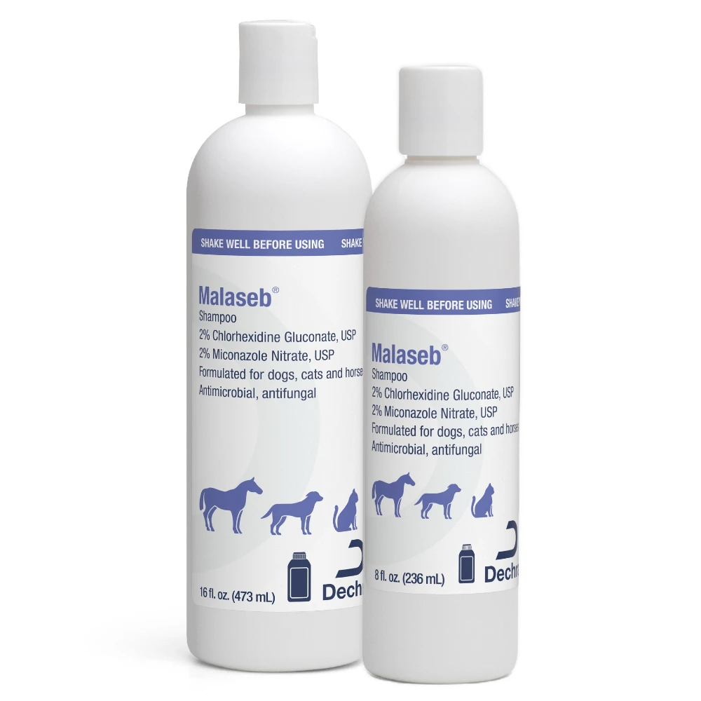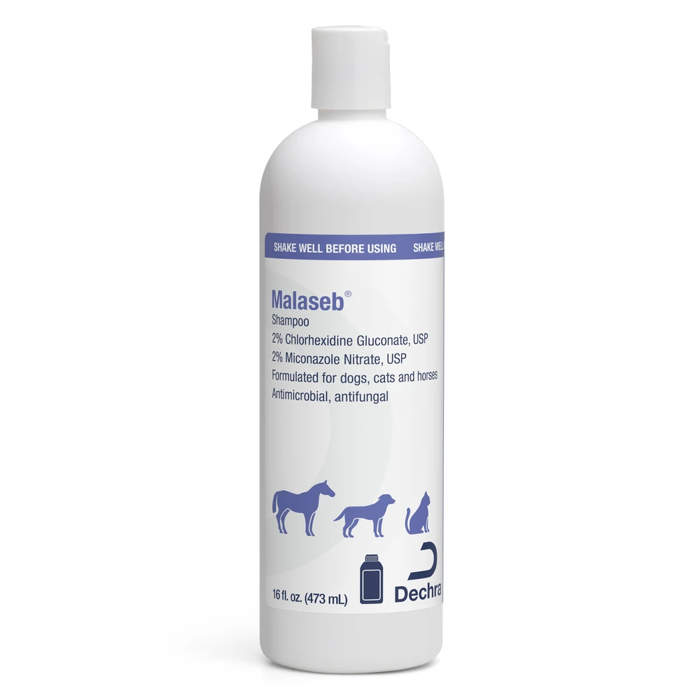 Malaseb® Shampoo combines a unique formulation of antibacterial and antifungal agents with coat conditioners for optimal therapeutic effectiveness. The fragrance-free shampoo base descales and degreases the hair coat without stripping.