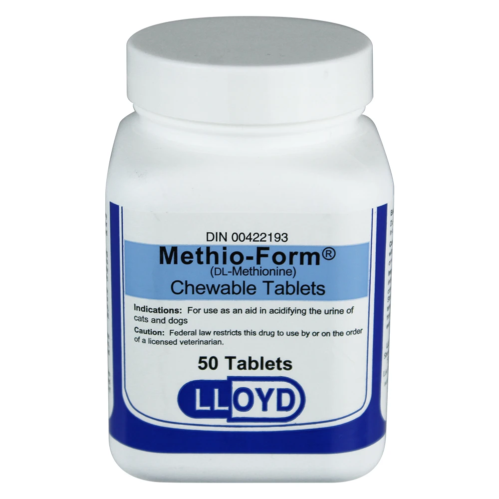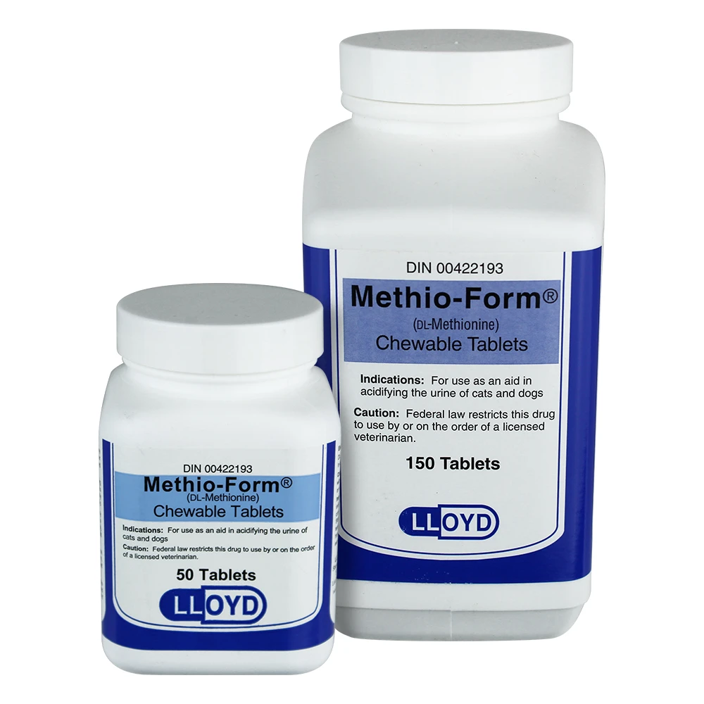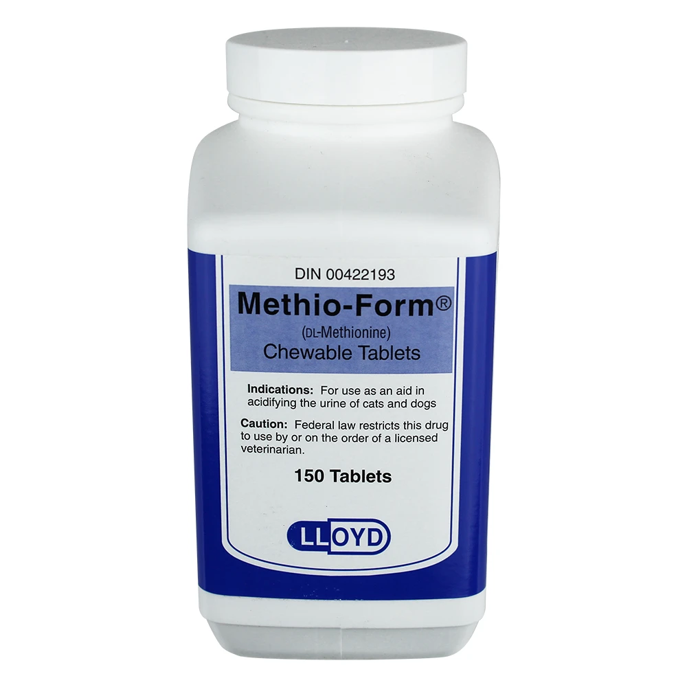 Methio-Form contains dl- methionine, a sulfur containing amino acid used as a urinary acidifier in dogs and cats. It also helps in treatment and prevention of certain types of bladder stone formation. It is also an aid in controlling the odor from feline and canine urine residues.