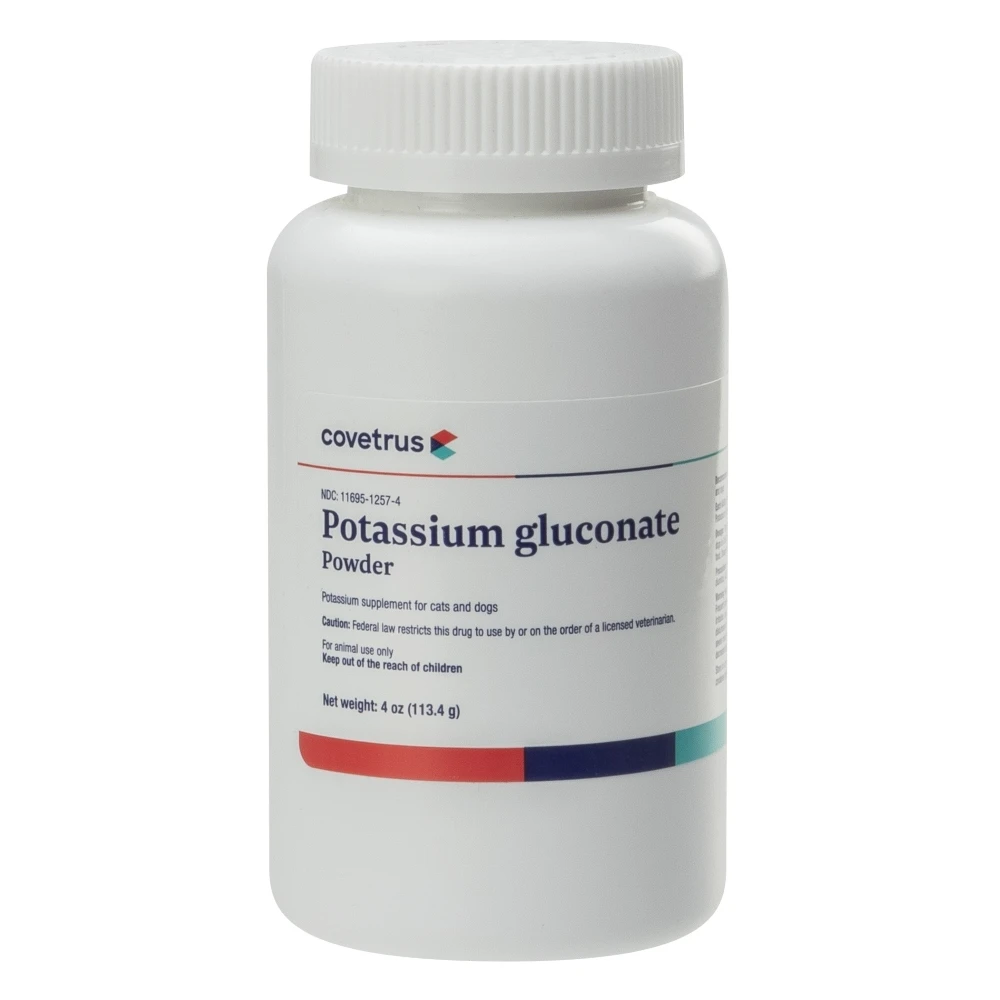 Potassium Gluconate Powder is recommended for use as a supplement for cats and dogs suffering from hypokalemia (low blood potassium). Common in pets with kidney problems. Easy to administer powder.