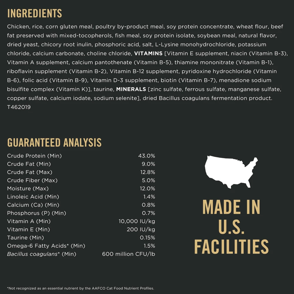 We formulate this premium dry cat food with high-quality sources of protein, including real chicken as the first ingredient. Fortified with guaranteed live probiotics, every serving of this food supports her digestive and immune health. With 100 percent complete and balanced nutrition for overweight and less active adult cats along with the taste she’s sure to love, this recipe provides the nourishment your feline friend needs to achieve her natural greatness.