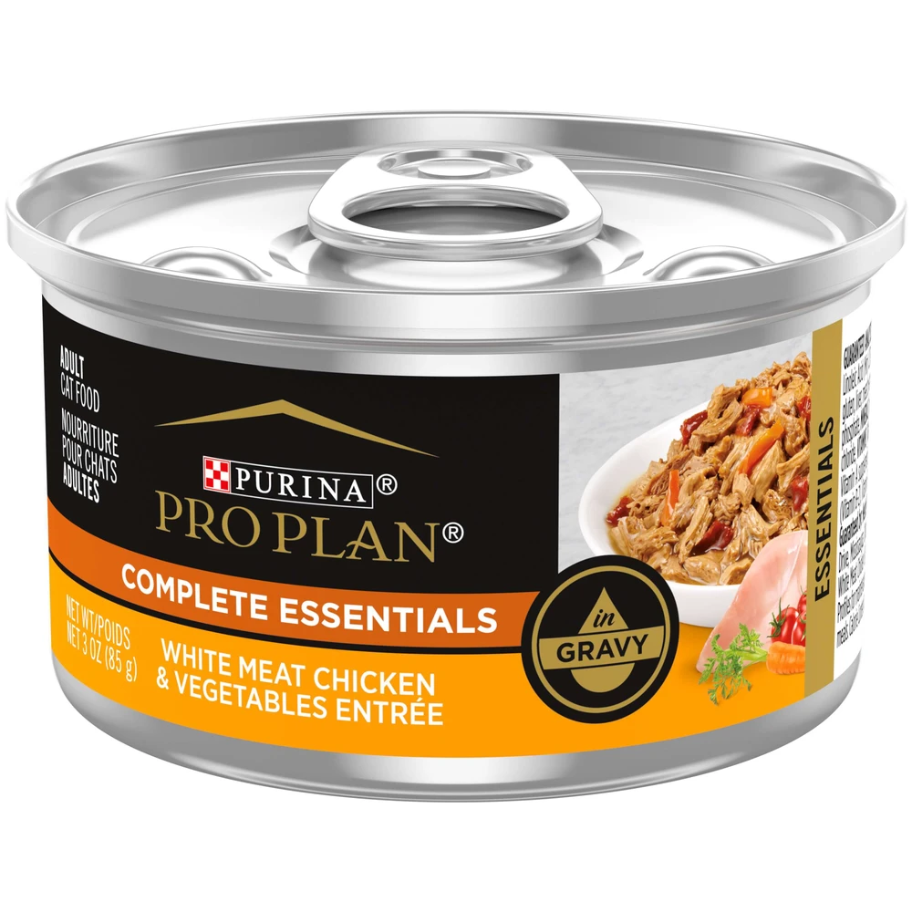 Bring savory goodness to your cat’s dish with Purina® Pro Plan® Complete Essentials® White Meat Chicken & Vegetable Entree in Gravy adult wet cat food. This premium cat food features real white meat chicken complemented with vegetables for a taste cats love.