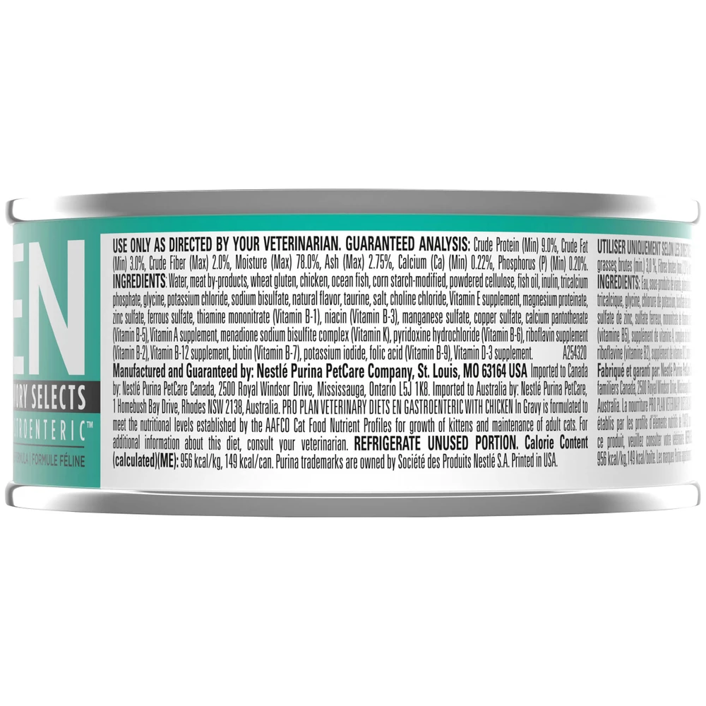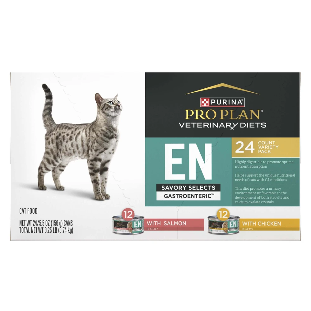 Purina® Pro Plan® Veterinary Diets EN Gastroenteric Feline Formulas are energy dense and support the unique nutritional needs of cats with GI conditions. Made with high-quality ingredients, these diets also support urinary health. The science behind our therapeutic diets represents a collaboration between Purina nutritionists, researchers and veterinarians.
