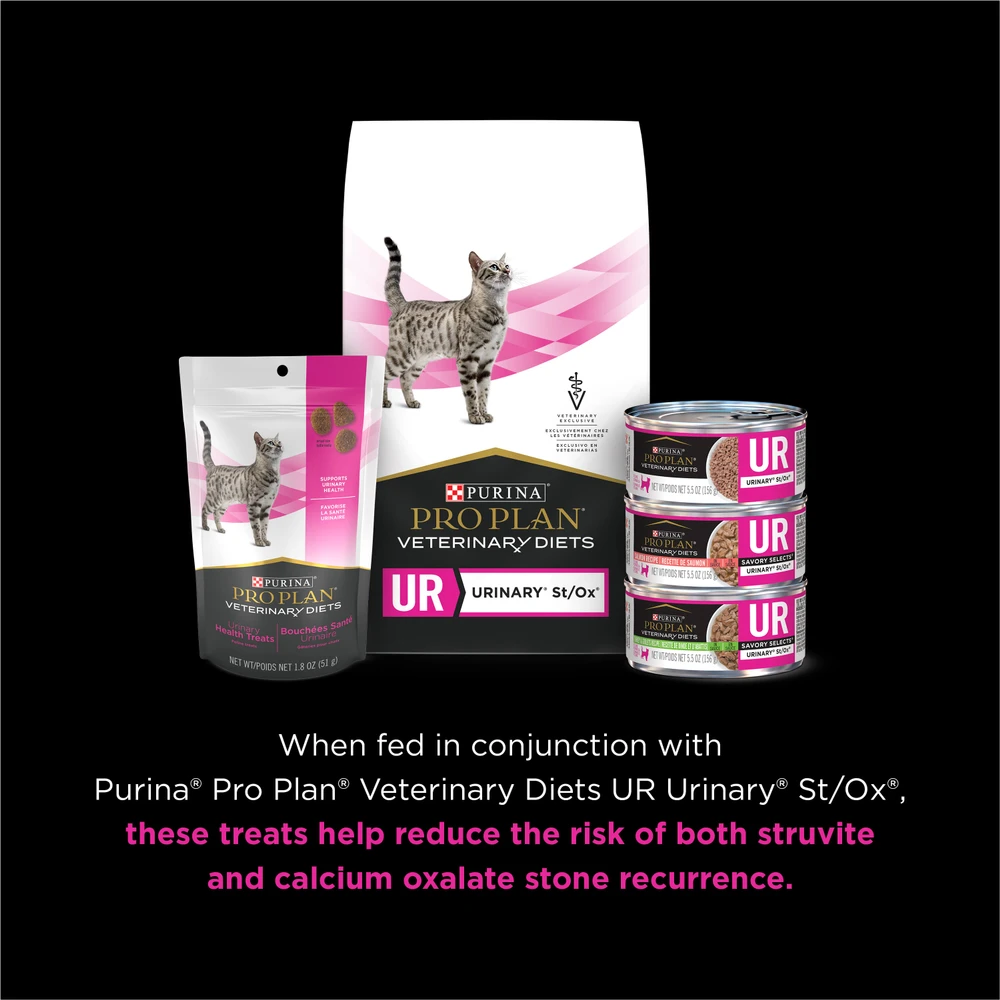 Purina® Pro Plan® Veterinary Diets Urinary Health Treat feline treats support urinary health. And when fed in conjunction with Purina® Pro Plan® Veterinary Diets UR Urinary® St/Ox®, these treats help reduce the risk of both struvite and calcium oxalate stone recurrence.