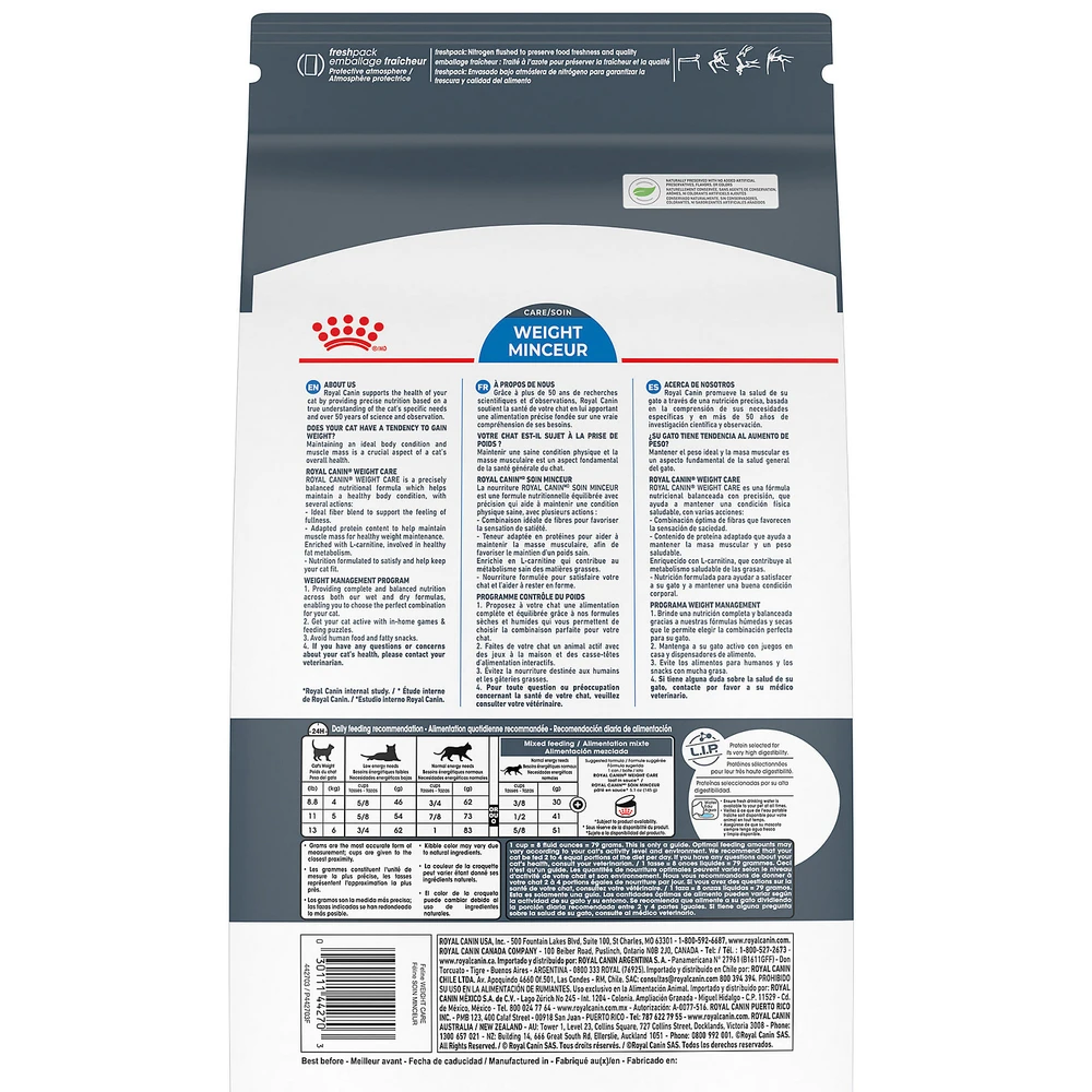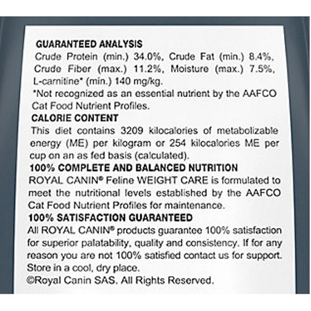 Created with your cat’s weight management in mind, Royal Canin Feline Weight Care Adult Dry Cat Food helps slightly overweight cats achieve a healthy weight in delicious-tasting kibble. It delivers the nutrition and support they need, featuring an ideal fiber blend to help keep them feeling full. Over 90% of slightly overweight cats fed Royal Canin Feline Weight Care Adult Dry Cat Food lost weight within two months. Royal Canin Feline Weight Care Adult Dry Cat Food is formulated for cats with a body condition score of up to 6/9, to help support muscle mass and a more ideal body condition. If you need to schedule your cat’s yearly annual exam, you’re concerned that they may have a body condition score over 6/9, or you have any other questions about their health, consult your veterinarian.