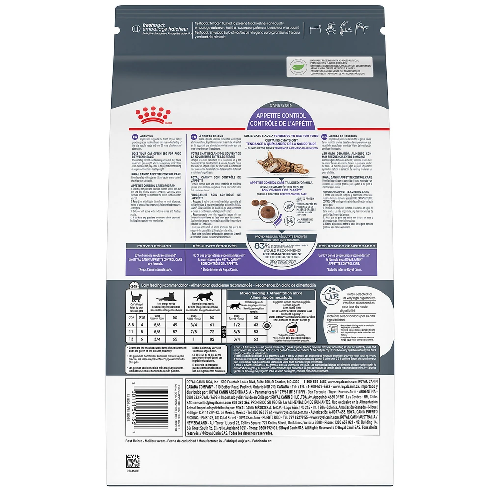 Royal Canin Appetite Control Spayed/Neutered dry cat food is specifically tailored for the unique nutritional needs of your adult cat (and is the perfect transition from Royal Canin Kitten Spayed/Neutered cat food). This complete and balanced formula is designed to help satisfy a cat’s increased appetite that can occur after surgery. High levels of fibers give your cat the feeling of fullness and help reduce the risk of overeating. Moderate fat levels help limit excess weight gain. And L-carnitine ensures their metabolism works hard, burning through calories and helping your cat stay at a healthy weight. Try pairing with Royal Canin Appetite Control Spayed/Neutered wet cat food for a meal your cat will love.