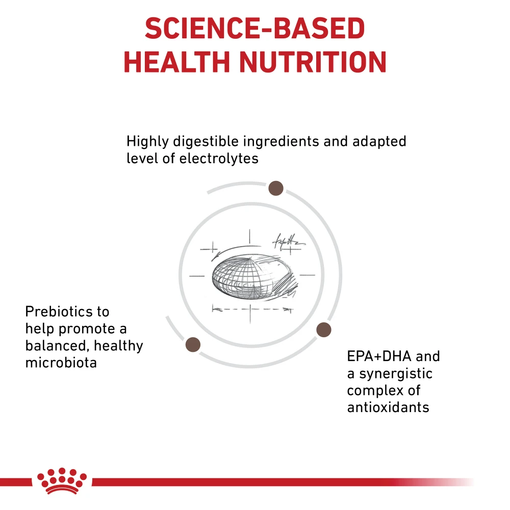 Royal Canin Gastrointestinal Moderate Calorie dry cat food is a palatable, digestible GI cat diet formulated with lower calories* for healthy weight maintenance—especially in cats with a tendency to become overweight. Prebiotics help maintain the balance of good bacteria in the gut. A blend of dietary fibers, highly digestible ingredients, and an adapted level of electrolytes helps support cats with gastrointestinal signs, including vomiting and diarrhea. Omega-3 fatty acids, EPA and DHA, from fish oil help nourish and soothe the GI tract. And the exclusive S/O Index supports urinary health by creating an environment unfavorable to crystal formation in the bladder. (* 11% less calorie content compared to Royal Canin Feline Gastrointestinal dry cat food)