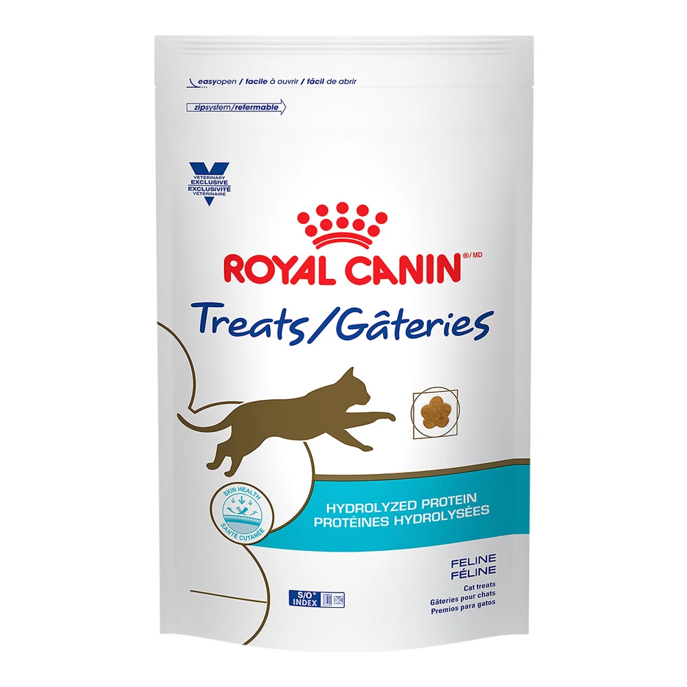 Royal Canin Hydrolyzed Protein cat treats are part of a comprehensive line of veterinary exclusive formulas for a cat with food sensitivities. These treats are made with hydrolyzed soy proteins composed of low molecular weight peptides. That means the digestive tract can absorb the proteins, reducing the risk of a reaction in the immune system. Optimal amounts of B vitamins and amino acids support a healthy skin barrier. With high digestibility and exceptional palatability, they’re a perfect way to reward a cat during an elimination diet trial or those with long-term food sensitivities.