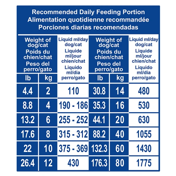 Being hospitalized can have an impact on a dog or cat’s nutritional status. This veterinary-exclusive liquid diet is specially formulated to help cats and dogs with assisted enteral nutritional needs. Royal Canin Veterinary Diet Canine and Feline Recovery Liquid is a complete and balanced diet for adult cats and dogs formulated to provide nutritional support for patients with feeding tubes. This liquid diet can go through nasoesophageal and nasogastric feeding tubes without dilution or blenderizing. It can also be mixed with a canned diet to increase the energy density of a blend for a larger feeding tube. This diet is highly digestible and its high energy density allows for reduced feeding volumes. Feed with veterinary supervision.