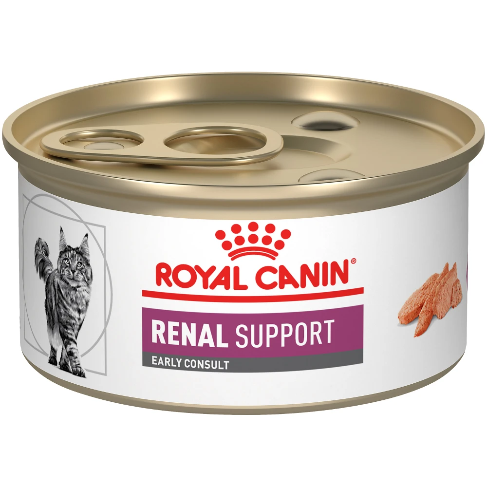 Royal Canin Veterinary Diet Feline Renal Support Early Consult is a veterinary-exclusive dry cat food to help your cat’s kidney health at an early stage. This innovative diet is formulated as a nutritional solution to support kidney care. It helps to support kidneys at an early stage with moderate phosphorus levels and an antioxidant complex. This highly palatable wet food is also formulated with nutrients, including antioxidants such as Vitamins E & C, to support cats with early signs of aging. It promotes digestive health with a combination of highly digestible proteins and balanced fibers, including prebiotics. This wet cat food also features S/O index to help promote a healthy urinary environment.