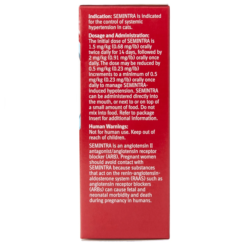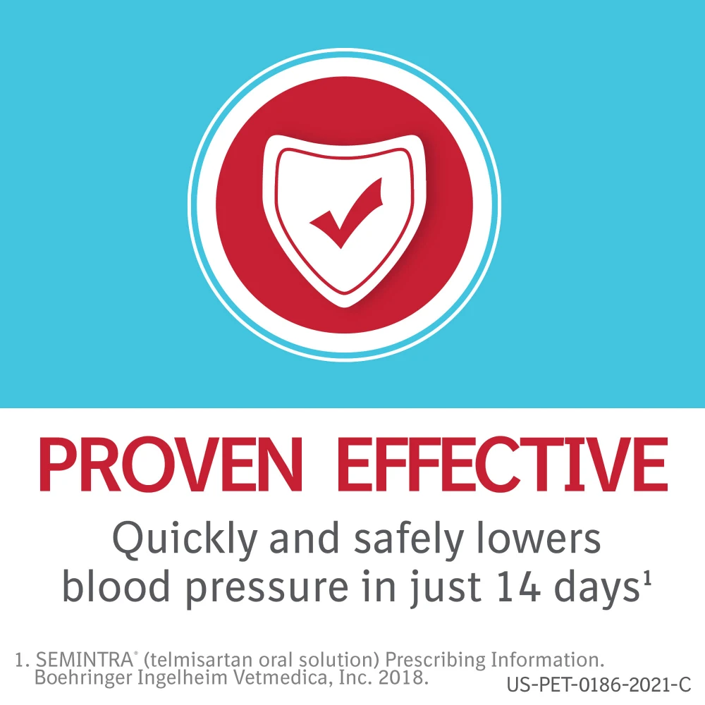 Semintra (telmisartan oral solution) is used to control high blood pressure in cats.