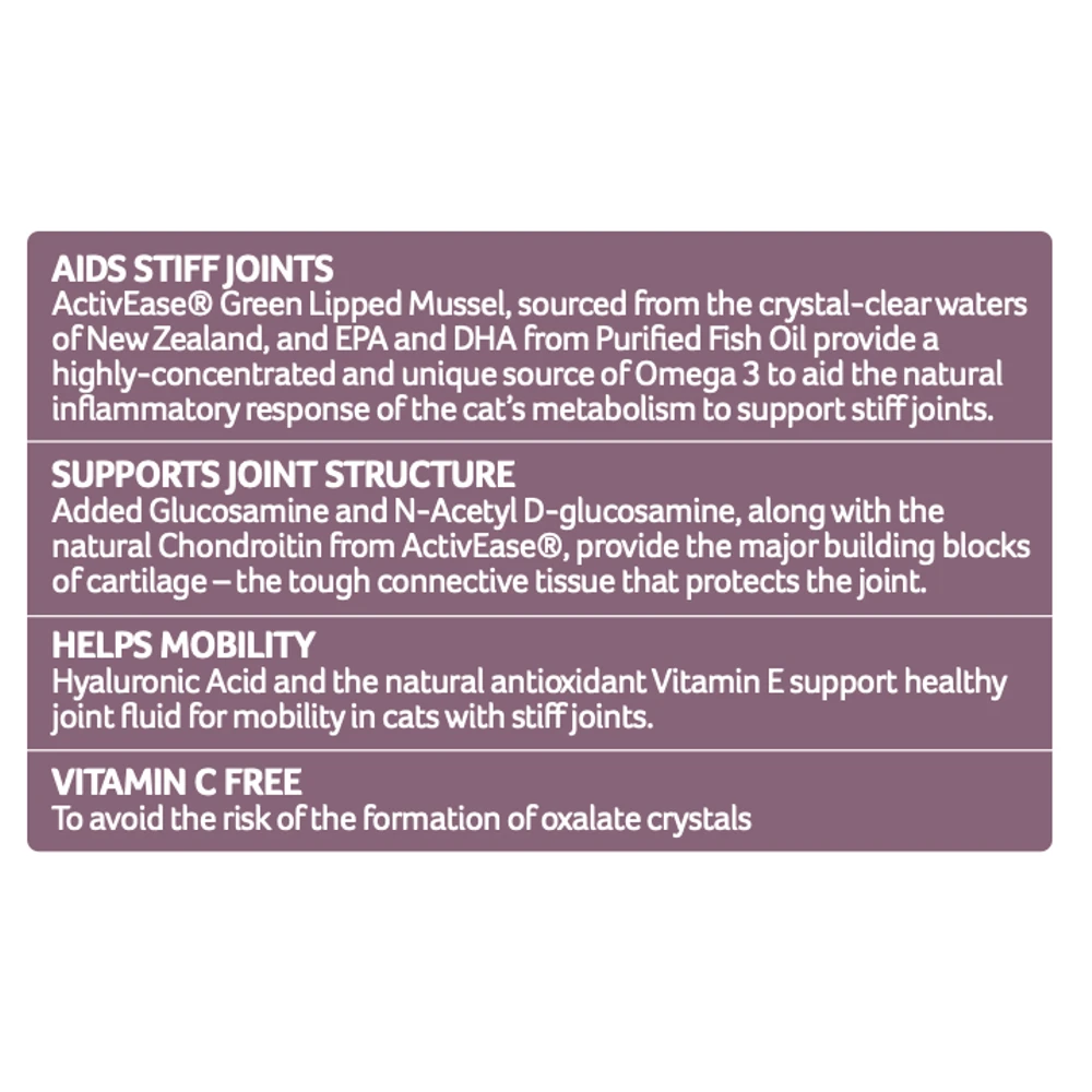 YuMOVE Advance 360 for Cats is Lintbells’ most concentrated formula, developed to ease joint stiffness and preserve healthy cartilage. With ActivEase® Green Lipped Mussel and Omega 3 fatty acids, this unique formula supports joints and helps to keep cats moving comfortably.